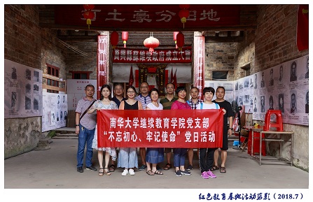 7月20日至7月22日,继续教育华体会平台党支部组织支部11名党员开展了“不忘初心,牢记使命”的支部活动,全体党员参观了红色流华湾、资兴市苏维埃政府旧址、移民博物馆,回顾湘南起义波澜壮阔的红色历史画卷,支部全体党员在资兴苏维埃政府旧址重温了入党誓词,支部书记曾庆生同志给大家上了“不忘初心,牢记使命”党课。